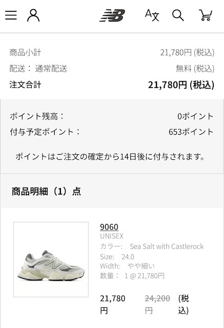 ちょうど狙っていた9060が対象だったので、さっそく公式オンラインストアで購入しました🉐
